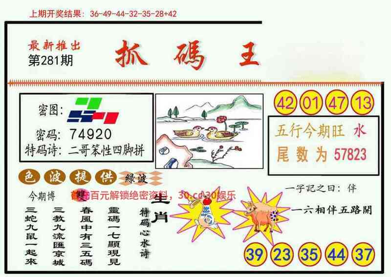 281期:三行生肖水金╣开:羊47准